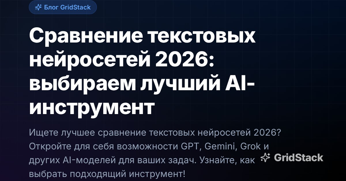 Ищете лучшее сравнение текстовых нейросетей 2026? Откройте для себя возможности GPT, Gemini, Grok и других AI-моделей для ваших задач. Узнайте, как выбрать подходящий инструмент!
